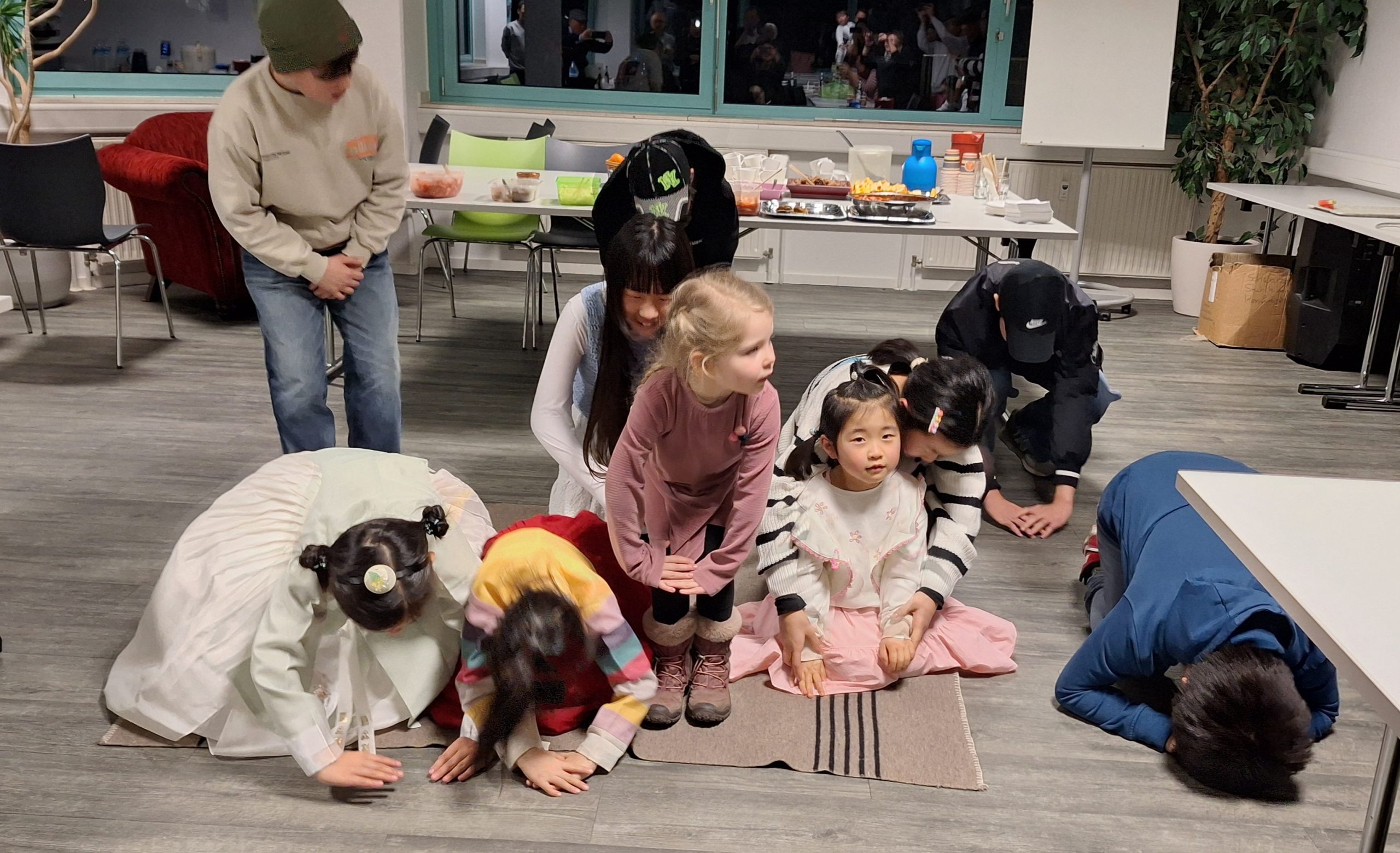 식사이후 어린이들이 세배를 하기위해 밖에서 세배연습을 하고 들어왔지만 아직은 서툴지만 이것이 우리 고유의 새해인사라고 알려주고 세배이후 세뱃돈과 과자를 받아들고 활짝 웃는 아이들의 모습이 너무 예쁘다.