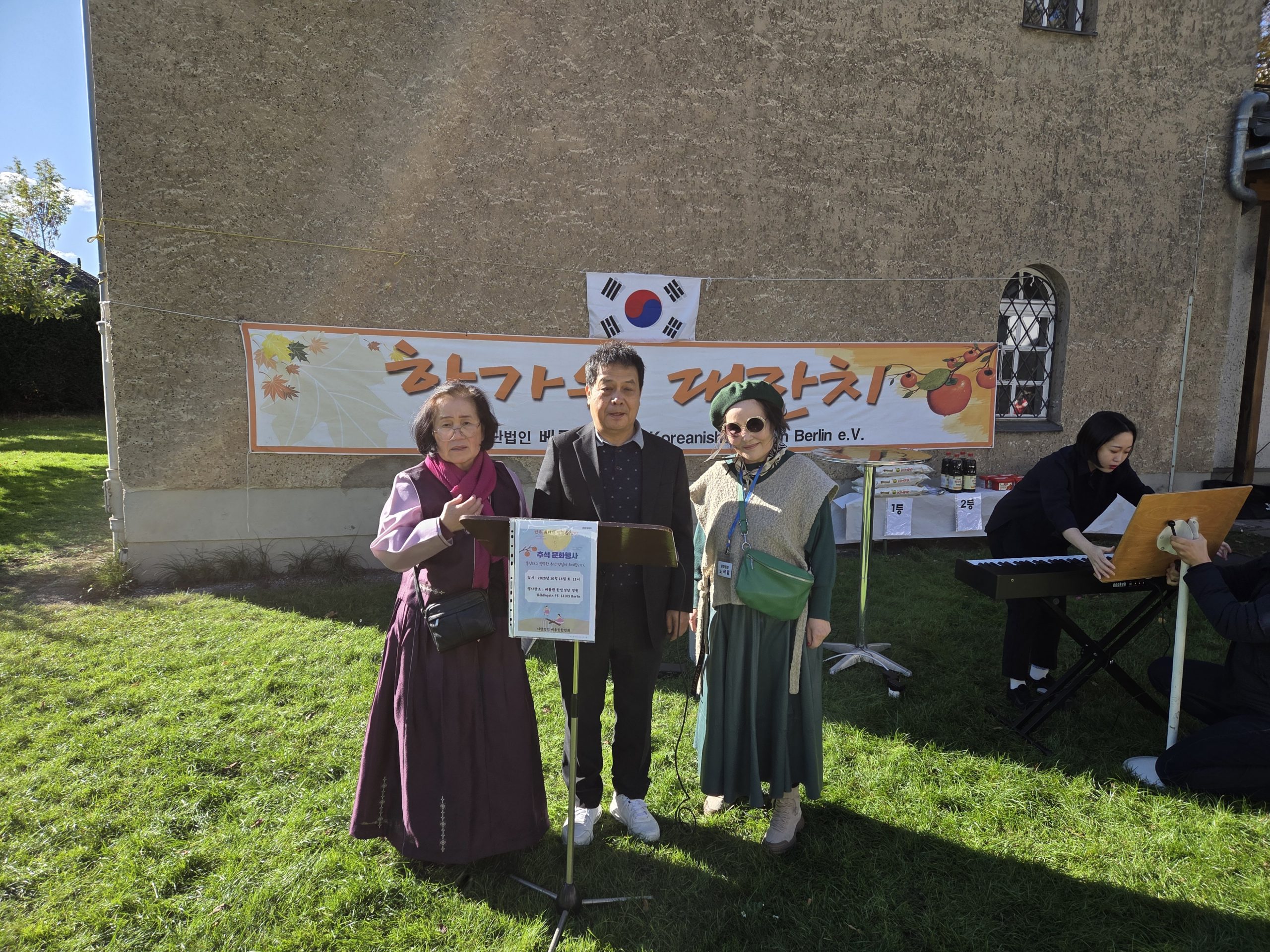 베를린. 지난 10월 18일(토) 아침부터 곱고 따뜻한 가을의 햇살을 받으며 베를린한인회(이영기회장)에서 한가위잔치를 펼쳤다. 베를린한인회는 하루 전인 10월 17일 저녁에 행사장인 베를린한인성당 정원에 텐트를 치는 등 준비를 하였다.