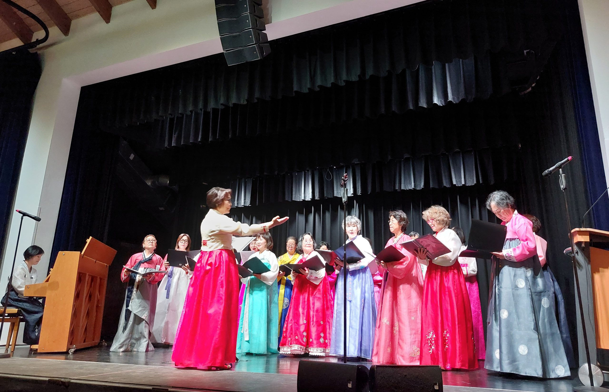 이 설날 잔치공연의 백미라고 할 수 있는 여성 합창단 공연이 뒤를 이었다. 합창단의 어르신들이 경쾌한 리듬의 산아리랑을 부를때 리듬감을 타시며 몸을 흔드셨고 관중들 모두는 손뼉을 치며 그 리듬에 호응했다. 도라지타령의 후렴구에서 지휘자 김화란씨는 뒤돌아서 관중들을 직접 쳐다보며 흥을 이끌어냈고 관중들은 환호하고 박수하였다.
